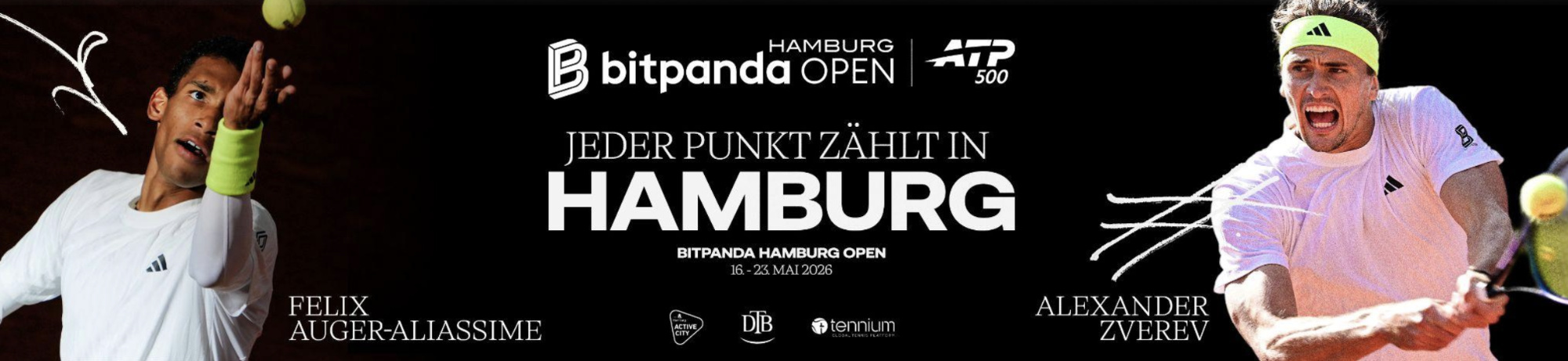 Ihr wollt die weltbesten Tennisspieler live am Hamburger Rothenbaum erleben? Dann habt ihr vom 16. – 23. Mai 2026 die Gelegenheit dazu. Dann findet wieder eines der traditionsreichsten Turniere im ATP-Kalender statt – Seid live dabei, wenn Deutschlands Nummer 1 Alexander Zverev und andere Stars wie Félix Auger-Aliassime kurz vor den French Open in Hamburg aufschlagen.